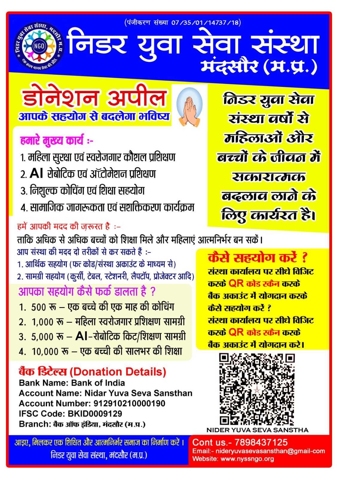 Name of the organization Nidar Yuva Seva Sanstha Mandsaur Madhya Pradesh
